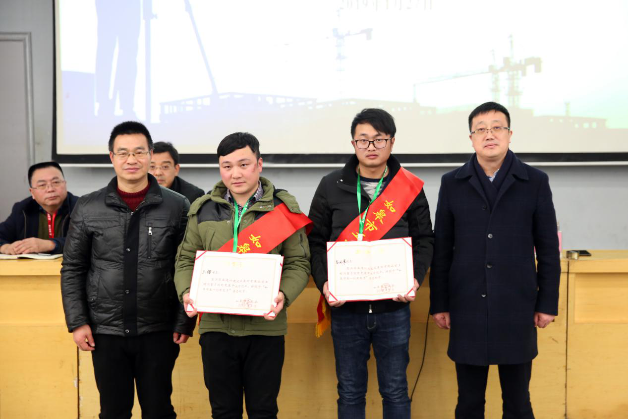 章祥余對所有參賽選手表示祝賀,對辛勤付出的工作人員表示慰問(wèn)。隨后,宣布獲獎名單,本次大賽共設一等獎1組,獲獎?wù)邽槟贤偛客趿?、高禮軍,并授予如皋市“五一創(chuàng )新能手”榮譽(yù);二等獎2組,獲獎?wù)邽槟暇┛偛拷鹧?、陳銳,工程總公司吉波 、尹曉輝;三等獎3組,獲獎?wù)邽槟贤偛恐礻惢?、王宇,工程總公司何曙光、陳世玉,石家莊總部洪兵、李世陳;優(yōu)秀獎4組,獲獎?wù)邽槭姓窐蚬娟惐?、顧步松,范從虎、繆亞軍,北京總部曹春、許舜,太原總部閭振、王小杰。章祥余為“優(yōu)秀獎”選手頒獎,賈建軍為“三等獎”選手頒獎,于厥智為“二等獎”選手頒獎,沈衛東為“一等獎”選手頒獎,周維寬為“一等獎”獲得者頒發(fā)如皋市“五一創(chuàng )新能手”榮譽(yù)證書(shū),同時(shí)為獲得“優(yōu)秀組織獎”的南通總部頒獎。