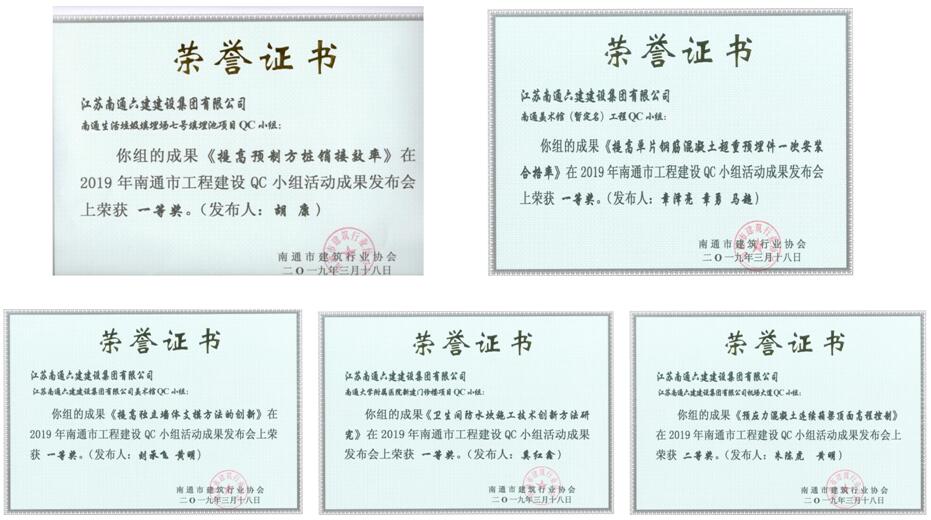 集團QC成果一等獎獲得率在南通五縣一市一區各企業(yè)中居首位,更成為唯一一家兩項QC成果全部獲得江蘇省發(fā)布資格的企業(yè),QC的大面積高質(zhì)量,改變了2018年南通六建省市兩級QC成果低質(zhì)量、零發(fā)布的窘境,使得南通六建再次成為了南通建筑施工企業(yè)中的佼佼者。